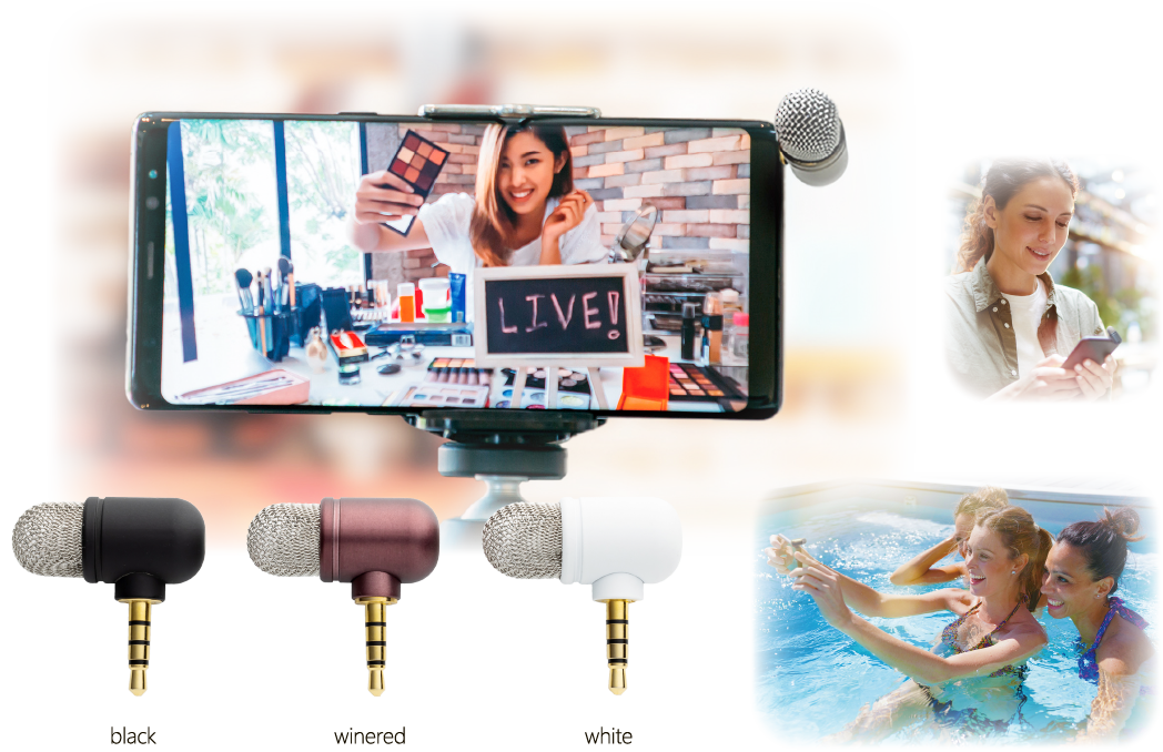 ミニプラグタイプの小型防水マイクで、スマートフォンやタブレット端末に直接差し込んで、本格的な音質を手軽に収音できます。